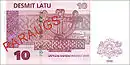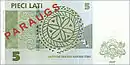 - банкноты достоинством 5, 10, 20, 25, 50, 100 и 500 латов.