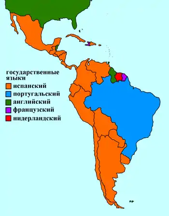 Лати́нская Аме́рика (исп. América Latina, Latinoamérica, порт. América Latina, фр. Amérique latine) — собирательное наименование американских стран и территорий, использующих в качестве официальных романские языки, прежде всего — иберо-романские испанский и португальский, иногда также галло-романский французский. Название объясняется тем, что романские языки произошли от латинского языка. Население — 661 млн чел. (9 сентября 2021 года) (8,9 % населения Земли).[2]