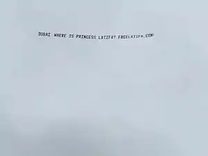 Группы поддержки также приняли участие в привлечении внимания общественности к кампании на Дерби в Кентукки 2018 года, запустив баннер с надписью «ДУБАЙ, ГДЕ ПРИНЦЕССА ЛАТИФА?»[59].