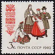 Существенную роль в хозяйстве играли домашние и сельские ремёсла. Каждый хозяин хутора умел делать всё: от орудий труда до домашней утвари. Это кузнечное, гончарное, столярное, плотницкое, бондарное ремёсла, а ткачество, вязание, плетение — это ремёсла женские. Кузнец считался самым уважаемым человеком. Устойчивость старинных традиций проявляется в изготовлении и использовании шерстяных вещей из-за влажного и прохладного климата. Самая яркая и любимая традиция латышей — это проведение праздников песни и танца[32] с хоровым исполнением народных песен[33][34].