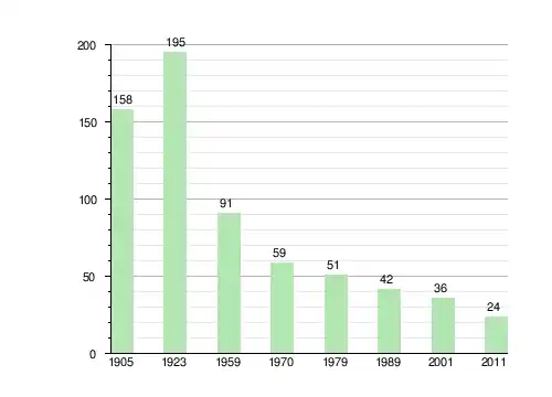 | 1905[3] | 1923пер.[4] | 1959пер.[5] | 1970пер.[5] | 1979пер.[6] | 1989пер.[7] | 2001пер.[8] | 2011пер.[9] |
