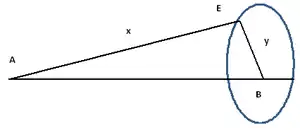 Лаунхард определяет оптимальный район продаж для конкурирующих между собой производителей, находящихся в одной точке и обслуживающих потребителей, равномерно рассредоточенных в зоне. Определяет цену доставки продукции потребителям — функция от фиксированной цены в месте её производства и транспортных расходов, которые прямо пропорциональны расстоянию до рынка. Спрос линейно зависит от местной цены доставки: количество проданных товаров одного производителя прямо пропорционально кубу транспортных расходов на доставку от фирмы до окружности границы зоны, где находится рынок, и обратно пропорционально квадрату транспортных тарифов. На диаграмме Района продаж показал, что А и В — пункты размещения двух производителей; овал — район продаж производителя В, чей товар является худшим, то есть более тяжел на единицу ценности товара, у которого угол наклона функции транспортных расходов больше; х и у — расстояние двух производителей от точки Е, где цены франко-завод для двух товаров равны. Если издержки производства товаров равны, то овал будет формы круга. Если транспортные расходы двух товаров равны, то овал формируется в гиперболу, вогнутую в сторону производителя с более высокими издержками производства. Если равны издержки производства и транспортные расходы, то граница становится в перпендикуляр, разделяющий два пункта расположения производителей. Если товаров более двух, то район продаж превращается n-угольник с прямыми сторонами[3].