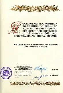 - Архив РАН. Ф.1713. Оп.2. Д.16. Диплом лауреата Ленинской премии, принадлежавший Миллионщикову М. Д. Подлинник.