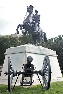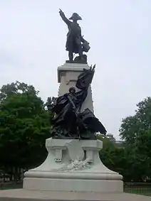 В центре парка с 1853 года стоит конная статуя президента Эндрю Джексона, а по углам находятся памятники героям революционной войны — французскому генерал-майору Жильберу де Лафайету (1891 год, юго-восток), французскому генерал-майору Жану де Рошамбо (1902 год, юго-запад), прусскому генерал-майору Фридриху Вильгельму фон Штойбену (1910 год, северо-запад), польскому бригадному генералу Тадеушу Костюшко (1910 год, северо-восток)[1][3]. Позднее по бокам от статуи Джексона были установлены военно-морские урны, которые в 1936 году были перенесены на Мэдисон-плейс и Джексон-плейс[12].