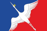 В лазоревом, червленом поле — серебряный летящий в правую перевязь журавль с распростертыми крыльями в золотой короне о трех зубцах. Щит увенчан муниципальной короной установленного образца.