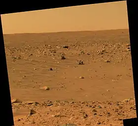 ![]() Вид кратера Лахонтен, снятый марсоходом Спирит | |