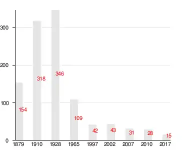 | 1879 | 1910 | 1928 | 1965 | 1997 | 2002 | 2007[16] |