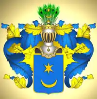 Герб потомства Тихона Гавриловича Лашка, мещанина Стародубовского (1677): в щите, имеющем голубое поле, изображены золотая шестиугольная звезда и под ней золотая луна рогами вверх. Щит увенчан дворянским шлемом и короной с павлиньими перьями, на которых видны звезда с луною. Намёт на щите голубой, подложен золотом[3].