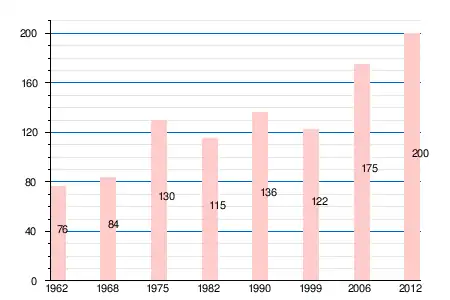 | 1962 | 1968 | 1975 | 1982 | 1990 | 1999 | 2006 | 2008 | 2011 | 2012 |