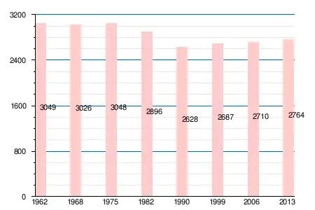 Население коммуны в 2011 году составляло 2864 человека[6], в 2012 году — 2812 человек[7], а в 2013-м — 2764 человека[5].