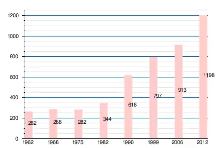 | 1962 | 1968 | 1975 | 1982 | 1990 | 1999 | 2004 | 2006 | 2009 | 2011 | 2012 |