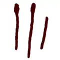 - Линейные знаки представляют большее разнообразие и сложность, как по своей морфологии, так и по своим сочетаниям (периодически они сочетаются с оленихами). Есть знаки в виде стрелы, ветки, пера, простые линии (палочки) и т. д. Например, на одной из первых панелей Галереи A знаки этого типа сочетаются с вульвой и оленихой. На втором ансамбле Галереи C зубр (панель 83), возможно, связан с линейным рисунком (есть предположение, что это поражающее его копье) и некоторыми другими символами. Рядом располагается линейный перообразный знак и другие грибообразные, которые рассматриваются ниже. Не все они были выявлены в первой монографии, но появляются в статье Леруа-Гурана[16]).