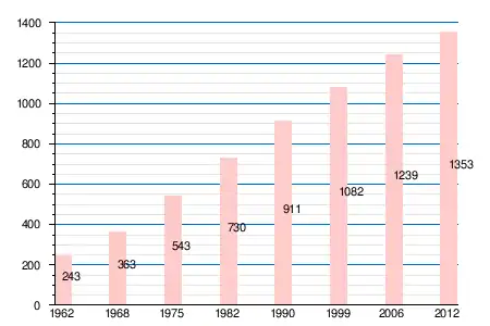 | 1962 | 1968 | 1975 | 1982 | 1990 | 1999 | 2006 | 2011 | 2012 |