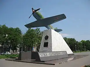 ![]() Макет Ла-11 в качестве памятника лётчикам 17-й воздушной армии, погибшим при освобождении Запорожья. | |