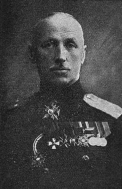 За то, что, состоя в названном полку по призыву из запаса гвардейской пехоты в чине штабс-капитана, в бою у м. Чарторийск 5-го октября 1915 года и будучи начальником передового отряда 6-й роты названного полка, получив задачу прорвать укрепленную позицию германцев у м. Чарторийск и овладеть Чарторийском, блестяще выполнил эту задачу: пользуясь предрассветной темнотой, провел свой отряд по считавшемуся непроходимым болоту и, невзирая на сильный ружейный и пулеметный огонь, без выстрела, смелым штыковым ударом овладел окопами германцев, взял в плен около 300 нижних чинов с офицерами 1-го гренадерского кронпринца Фридриха полка, 2 пулемета и 2 орудия. После этого привел свой отряд в порядок и, не давая противнику опомниться, умелым маневром, с угрозою тылу германцев, энергично атаковал м. Чарторийск, несмотря на упорное сопротивление, овладел им и преследовал затем противника за пределы этого местечка; при чем захватил еще одно орудие и взял в плен более 100 нижних чинов с офицерами того же гренадерского полка. Всего взято в плен 12 офицеров, 1 врач, 418 нижних чинов и захвачено 2 пулемета и 3 орудия.