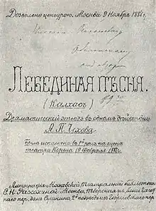 «Лебеди́ная песня (Ка́лхас)» — одноактная пьеса А. П. Чехова, переделанная им из рассказа «Калхас» (1886); написана в январе 1887 года и напечатана несколько раз с сокращениями, что отдельно отмечалось автором[1][2][3]. Представляет собой пример перехода эпического жанра к драме, экспериментальная форма пьесы-монолога, где герой показывает своё эпическое начало через его драматическое проявление[4][5].