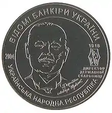 ![]() Украинская сувенирная монета из серии «Известные банкиры Украины» с изображением Х. М. Лебедя-Юрчика (2004) | |