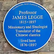 - Professor James LEGGE (1815—1897). Sinologist and missionary. 3 Keble Road. Oxfordshire Blue Plaques Board. Дата обращения: 22 марта 2020.