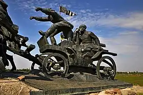 Расположен в Херсонской области Украины, в городе Каховка. Монумент также называется «Памятник тачанке», так как во времена Гражданской войны в СССР тачанка получила широкое применение в конных войсках Красной Армии.