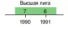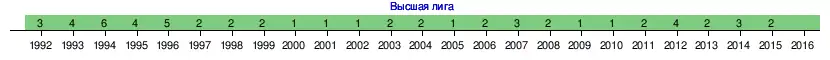 | 1995 | І | Высшая лига | 4 из 9 | 16 | 8 | 2 | 6 | 23 | 16 | 26[~ 3] | первый раунд | [3][7] | |||