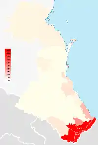 Лезгины традиционно проживают в Южном Дагестане. Первая советская перепись 1886 года[уточнить] зафиксировала в Дагестане 99,246 лезгин, а по данным переписи 2010 года численность лезгинского населения составило 387,746 человек. Около 52 % лезгин в Дагестане исторически населяют Ахтынский (99 %), Дербентский (19 %), Докузпаринский (94 %), Курахский (99 %), Магарамкентский (96 %), Сулейман-Стальский (99 %), Хивский (39 %) и Рутульский (10 %) районы, а также проживают в селе Куруш Хасавюртовского района. Городское население лезгин главным образом сосредоточенно в городах Дербент (34 %) и Каспийск (22 %) где являются первыми по численности народом, незначительно уступая по численности кумыкам и даргинцам проживают в Махачкале (15 %), третьи по численности в городах Дагестанские Огни (18 %) и Избербаш (8 %), а также проживают в городах Кизляр, Хасавюрт, Южно-Сухокумск и Кизилюрт.