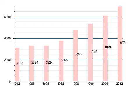 Население коммуны в 2011 году составляло — 6743 человека[5], а в 2012 году — 6971 человек[4].