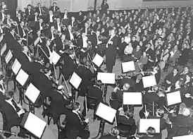![]() Лейпцигский оркестр Гевандхауза под управлением Франца Конвичного исполняет Симфонию №4 А. Брукнера на фестивале «Пражская весна» в 1954 году. | |