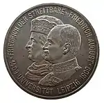 В честь 500-летия университета в 1909 году были отчеканены монеты номиналом в 2 и 5 марок тиражами 125 и 50 тысяч соответственно. На аверсе монет изображены курфюрст Саксонии Фридрих Воинственный при котором открылся университет и король Фридрих Август III, который правил в 1909 году[2].