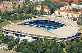 - Местный футбольный клуб «РБ Лейпциг», основанный в 2009 году, с 2014 года выступал во Второй Бундеслиге. В 2016 году пробился в высшую лигу немецкого футбола и сразу в сезоне 2016/17 занял второе место, получив право выступать в Лиге чемпионов УЕФА.