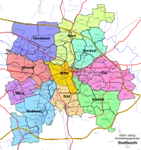 С 1992 года Лейпциг административно подразделяется на десять городских округов (нем. Stadtbezirk), охватывающих 63 исторических района — некогда самостоятельные предместья и деревни, включённые в состав города в XIX—XX веках.