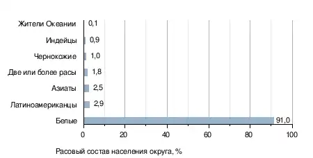 На 2008 год в округе насчитывалось 15 340 жилищных единиц, на каждую из которых приходилось в среднем 2,4 человека. Индекс стоимости жизни в округе на декабрь 2009 года был ниже, чем средний по стране: 91,2 и 100 соответственно. Распределение населения по возрастным категориям по данным на 2007 год[11]: