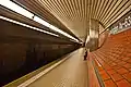 Станция была отделана в красно-оранжевых тонах, но в процессе подготовки северной стороны платформ оформление было изменено. Путевая стена на обоих уровнях теперь облицована плитками белого цвета и более современного дизайна, а временная стена, разделявшая каждую из платформ на северную и южную сторону, ликвидирована.