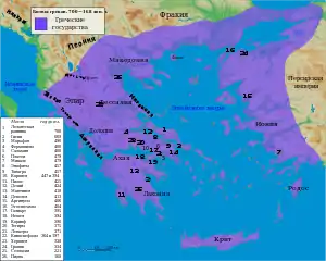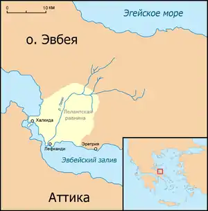 ![]() Места сражений Древней Греции. Лелантская равнина показана под номером 1 | |||