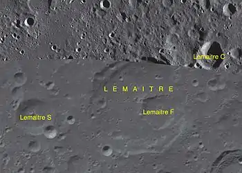 - Образование сателлитных кратеров Леметр F и S относится к нектарскому периоду[1].