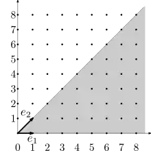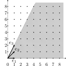 где неотрицательные коэффициенты при разложены в сумму неотрицательного целого и дробной части . Но так как и первая сумма целочисленны, вторая сумма тоже обязана быть вектором целочисленной решётки. При этом вторая сумма находится в ограниченной области, зависящей только от векторов , но не от вектора , поэтому для неё есть лишь конечное число возможностей. Таким образом, конечно порождена[3].