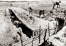 Важную роль в создании инженерной обороны города сыграли заместитель командующего фронтом по оборонительному строительству генерал-майор П. А. Зайцев и начальник инженерного управления фронта подполковник Б. В. Бычевский. В результате трудовой мобилизации число трудармейцев (без инженерно-строительных частей и стройорганизаций), работавших на подступах к городу, в середине августа составляло свыше 450 тысяч человек и увеличилось по сравнению с серединой июля 1941 года более чем на 350 тысяч человек. В начале сентября была проведена новая мобилизация и принято решение о создании ряда новых рубежей и отсечных позиций. В тылу Красногвардейского укрепрайона был создан Пулковский оборонительный рубеж. Он проходил по линии Урицк—Пулково—Колпино и являлся последним ближним подступом перед южными районами города[29].
