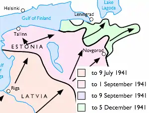 По окончании Прибалтийской стратегической оборонительной операции немецкие войска хотя и не выполнили свою стратегическую задачу уничтожения советских сил в Прибалтике[12], тем не менее заняли значительную территорию СССР, создав предпосылки для наступления на Ленинград.