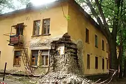 Большая часть улицы застроена двухэтажными домами, построенными, как до, так и после Великой Отечественной войны. В конце улицы, после пересечения с улицей Циолковского, построено несколько сталинок. Многие здания находятся в аварийном состоянии, некоторые начали разрушаться. Так, например, от дома № 58 Б в мае 2009 года отвалилась часть стены.[5]