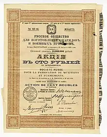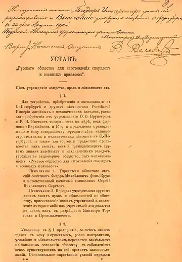 В 1910 году в Петербурге учреждается акционерное общество под наименованием: «Русское общество для изготовления снарядов и военных припасов». Свою деятельность оно начало с приобретения у фирмы «Парвиайнен и Ко» снарядного завода на Выборгской наб. д. 15. С целью дальнейшего увеличения прибылей, Общество решило купить участок земли площадью около 9.140 кв. сажень на Чугунной ул.2 и построить там новый механический завод для производства минного снаряжения и снарядов для Военно-морского флота, а также Сталелитейный завод, для обеспечения обоих заводов качественными заготовкам.