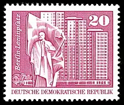 Среди многих ленинских марок ГДР две почтовые миниатюры были посвящены монументу В. И. Ленина в Эйслебене (Mi #772,1560)[34][35][≡][≡].
