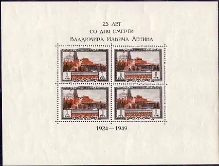 В 1949 году к 25-летию со дня смерти В. И. Ленина выходили два почтовых блока (ЦФА [АО «Марка»] № 1362—1363), марки которых были с перфорацией и без неё. Ленинские блоки этого выпуска считаются одними из самых редких изданий почты СССР после 1945 года[24].