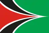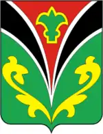 В зелёном поле вогнутое и сужающееся к острию опрокинутое чёрное стропило, тонко окаймлённое серебром, заполненное червленью и в червлении сопровождённое зелёным, окаймлённым золотом, цветком тюльпана, а в зелени - двумя отклонёнными в стороны, сообращёнными цветами, золотыми тюльпанами (на стеблях и с листьями)[48].