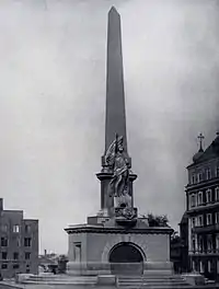 К первой годовщине Октябрьской революции 7 ноября 1918 года на улицах и площадях Москвы было открыто 12 монументов. Наиболее значимым среди них был обелиск, посвященный первой советской конституции, через полгода дополненный статуей свободы[28]. По мнению некоторых исследователей, монумент Советской Конституции — одно «из лучших произведений ленинского плана монументальной пропаганды»[29]. Однако кирпичный обелиск с бетонной статуей быстро обветшал, простояв всего лишь около 20 лет; в 1941 году его снесли при расчистке площади.