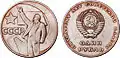 В 1977 году тиражом 5 млн экземпляров был выпущен рубль в честь 60-летия Октябрьской революции. На нём была изображена голова Ленина, крейсер «Аврора», Монумент «Покорителям космоса» и схема атома.