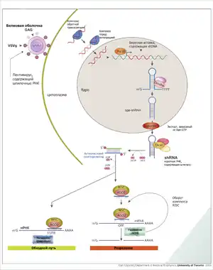 Лентивирусы — удобный вектор для введения генов в системы in vitro или животные модели. Лентивирусные векторы успешно используют для доставки генно-инженерных конструкций для блокирования экспрессии специфических генов по механизму РНК-интерференции[2]. Экспрессия коротких РНК, содержащих шпильки (shRNA) снижает экспрессию заданного гена и таким образом позволяет судить о функциях данного гена в модельном объекте. Подобные исследования могут предшествовать разработке новых лекарственных препаратов для лечения заболеваний при помощи блокирования экспрессии определённых генов.