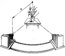 По дуге вокруг статичного объекта движется камера. Между жёстко прикреплённой к задней стенке камеры фотоплёнкой и объективом находится растр, прижатый к фотоплёнке так, чтобы между ними не было зазора, но растр мог скользить вдоль неё. Одновременно с перемещением камеры между крайними положениями, растр смещается на один период против направления движения камеры[6]. В результате на плёнке получается закодированное негативное или позитивное кодированное изображение.