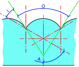 Угол снаружи линзы определяется преломлением луча, определенного выше. Полный угол наблюдения задается формулой