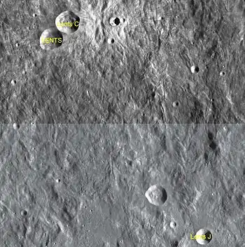 ![]() Снимок зонда Lunar Reconnaissance Orbiter. Кратер Ленц – самый левый на снимке, рядом с ним сателлитный кратер Ленц C, в правой части снимка (в центре) кратер Пьераццо. | |