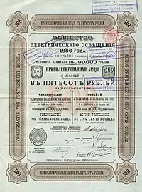 - Высочайше утвержденный Устав Общества электрического освещения // Собрание узаконений Российской империи. — 29 августа 1886. — № (статья) 784.