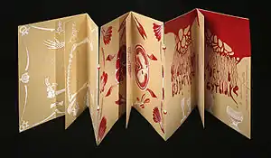 Заготовки открыток лепорелло используются в скрапбукинге для приклеивания фотографий, рисунков, памятных вещиц, декоративных элементов с целью создания памятного или подарочного альбома[5]. Аналогичным образом можно сложить и шпаргалку.